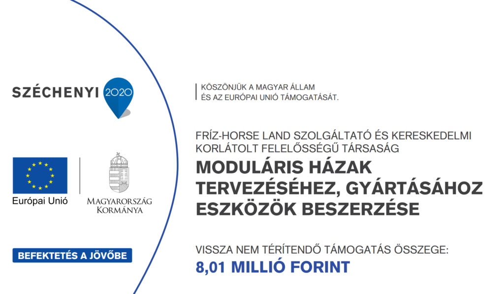 A Gazdaságfejlesztési és Innovációs Operatív Program Plusz keretén belül a Nemzeti Fejlesztési Központ, mint Támogató által 2024.09.25-én GINOP_PLUSZ-2.1.3-24 azonosító számon meghirdetett felhívás alapján a FRÍZ-HORSE LAND Kft által 2024.11.12-én benyújtott „Kisléptékű innovációs fejlesztés a FRÍZ-HORSE LAND Kft-nél” támogatási kérelmet a Támogató elbírálta, és támogatásra alkalmasnak minősítette.