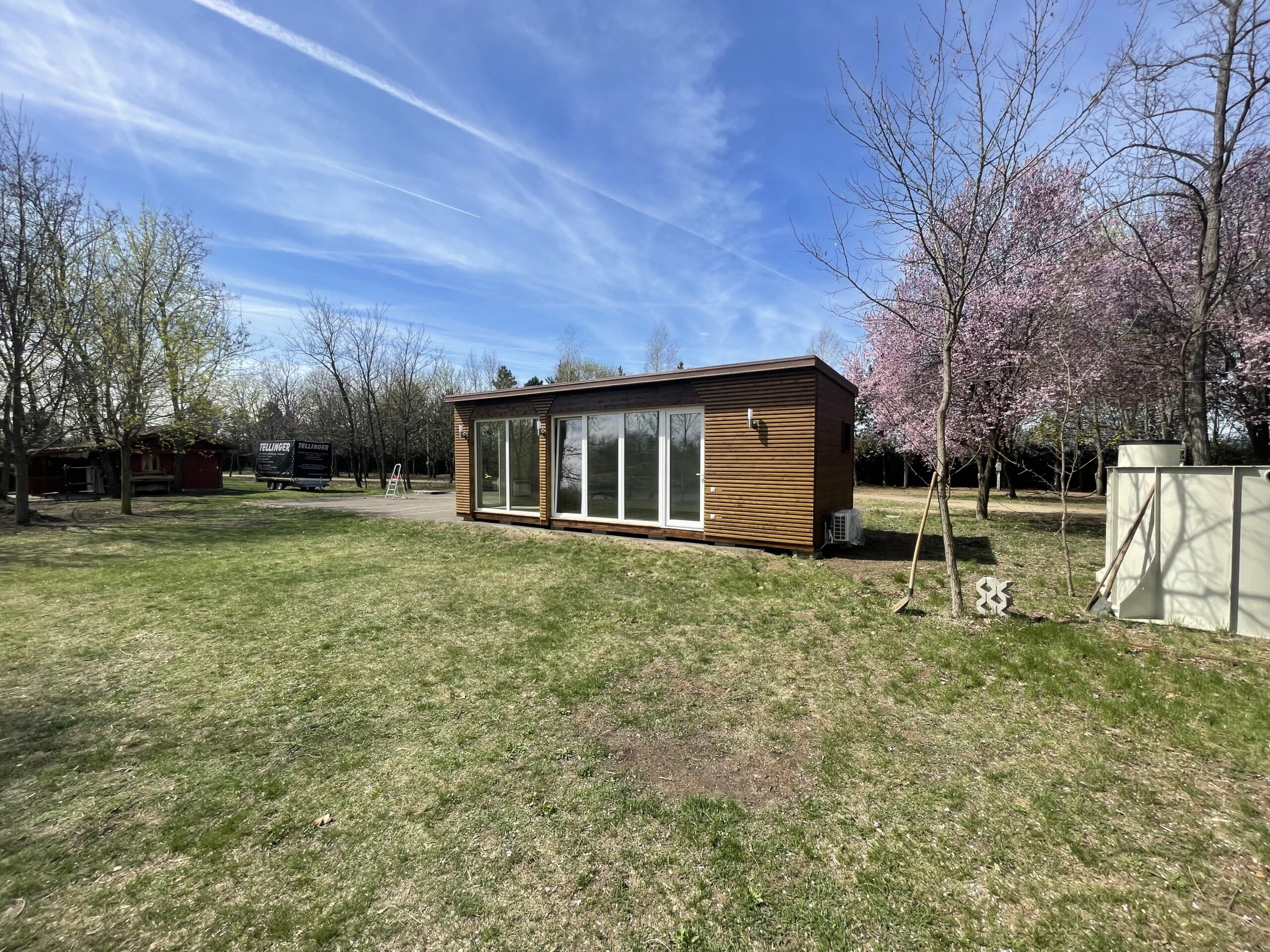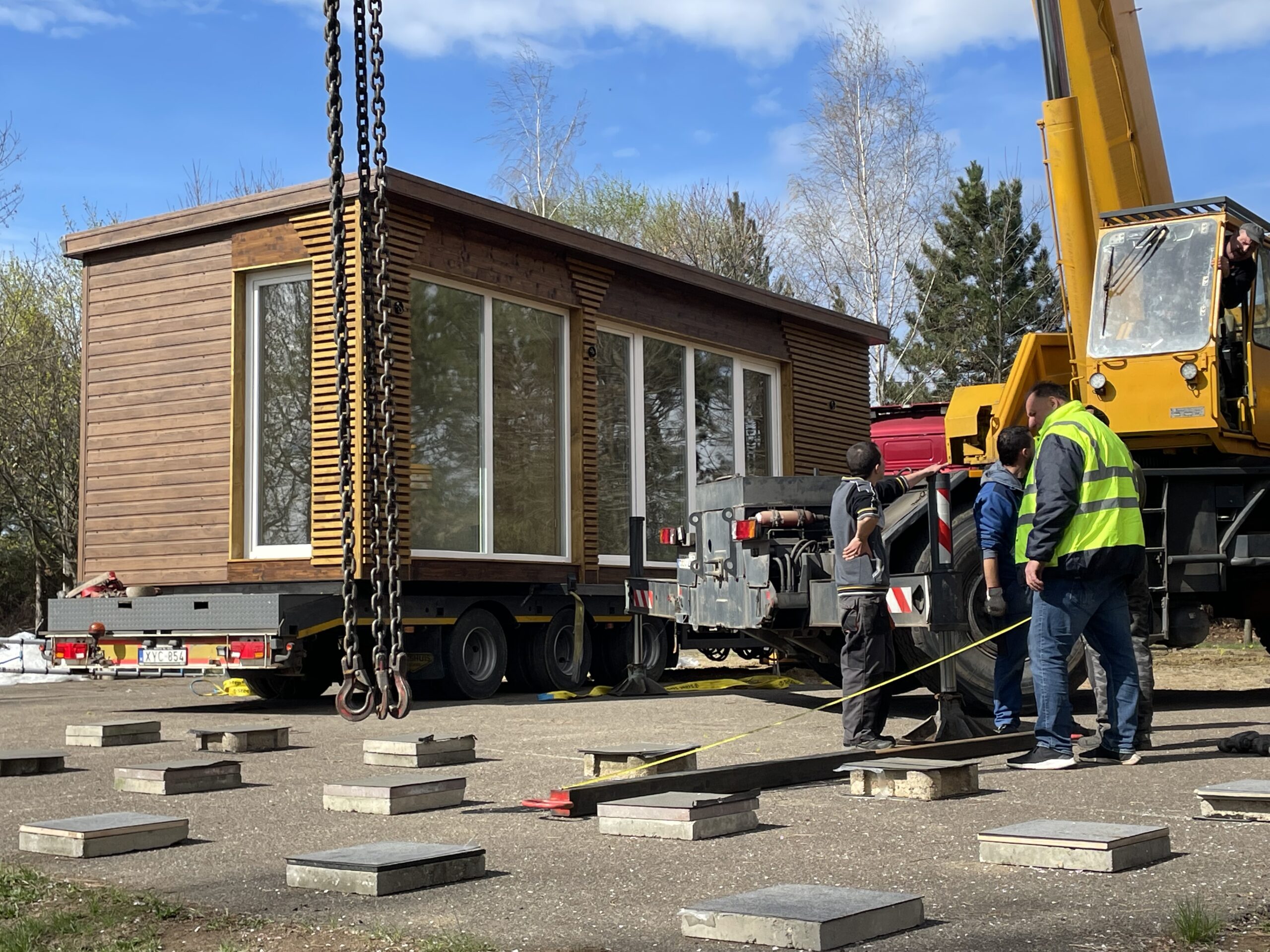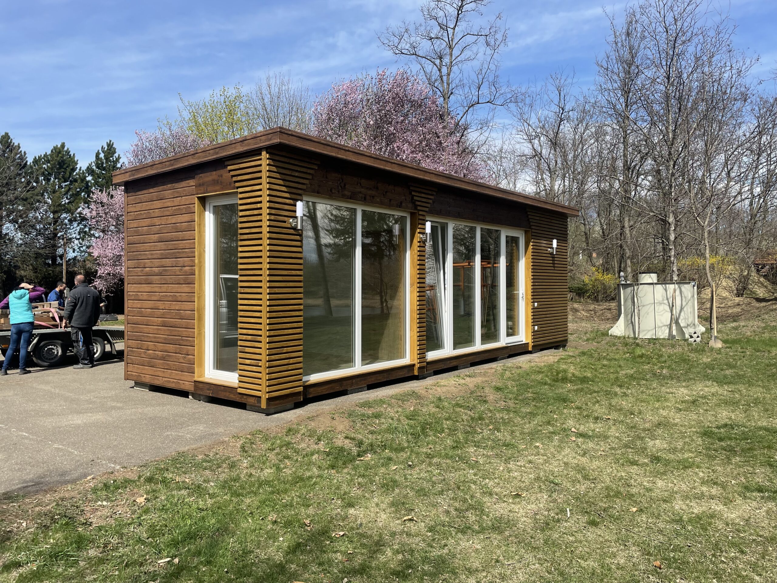 - Zöld övezetben, közvetlen a természetben elhelyezett moduláris házunk a megrendelői igények szerint került kialakításra, ahol az elvárás az volt, hogy a homlokzat burkolatával megfelelő harmóniát alakítsunk ki a környezettel úgy, hogy az épületbe minél több természetes fény juthasson be.