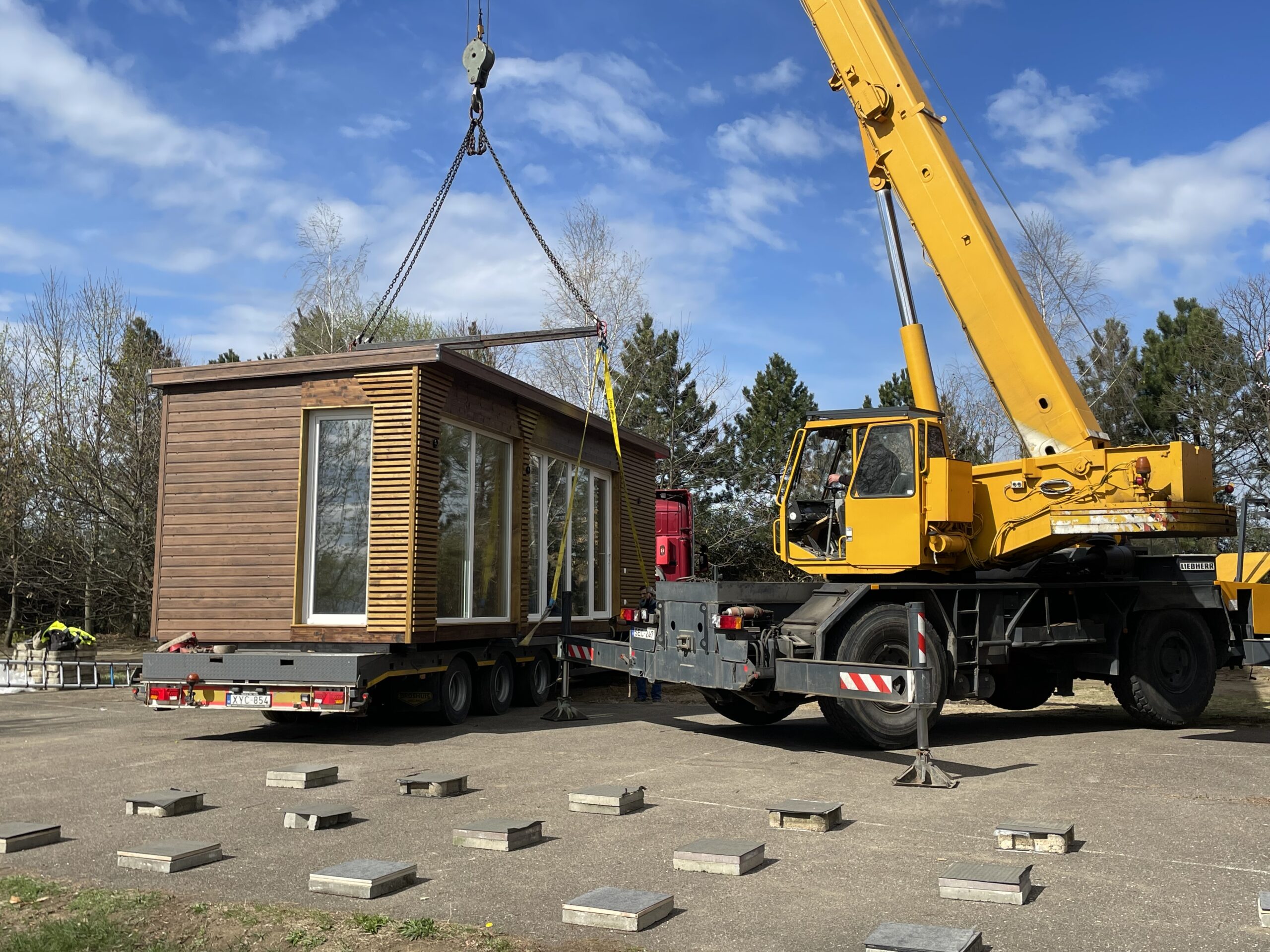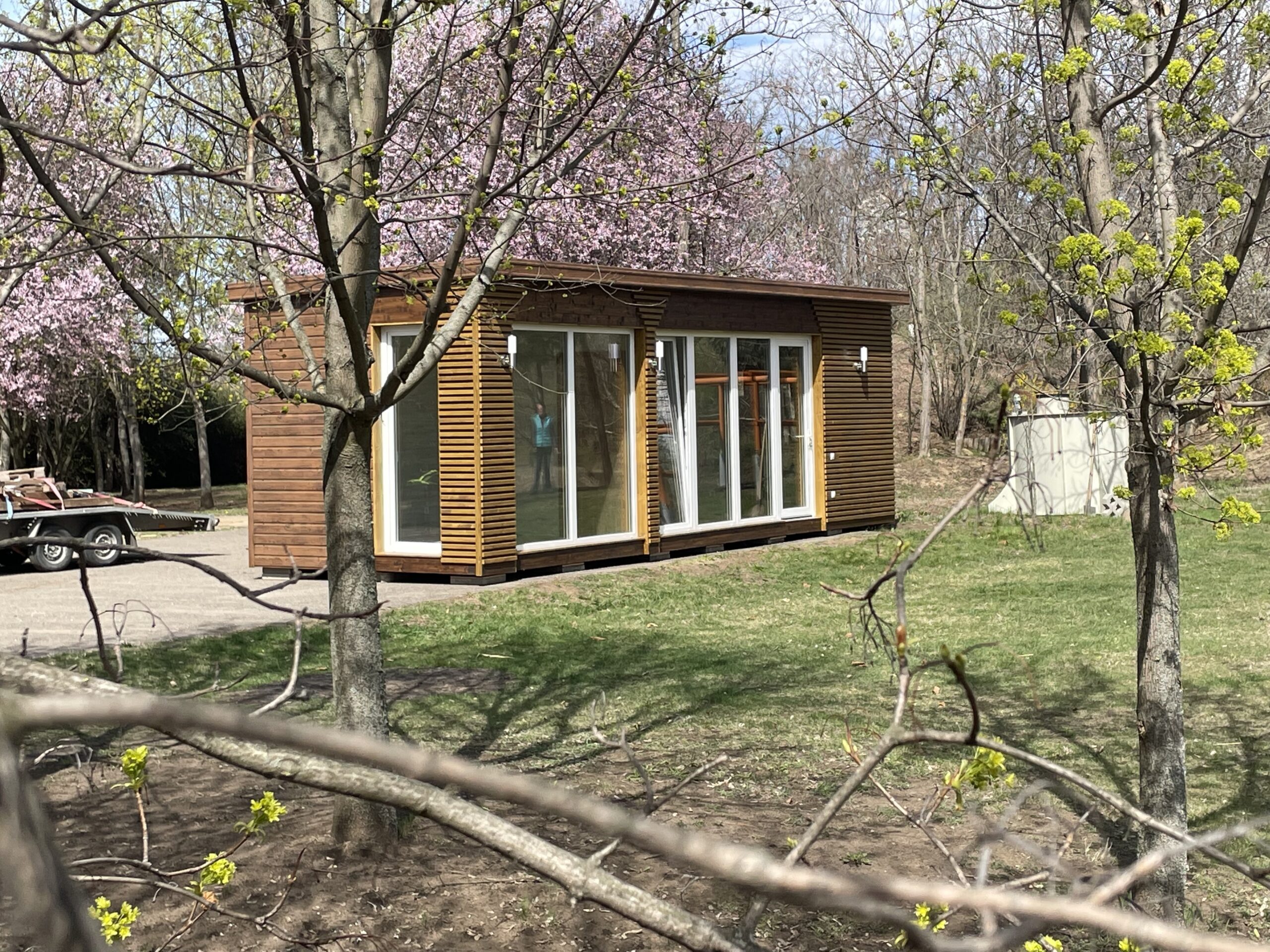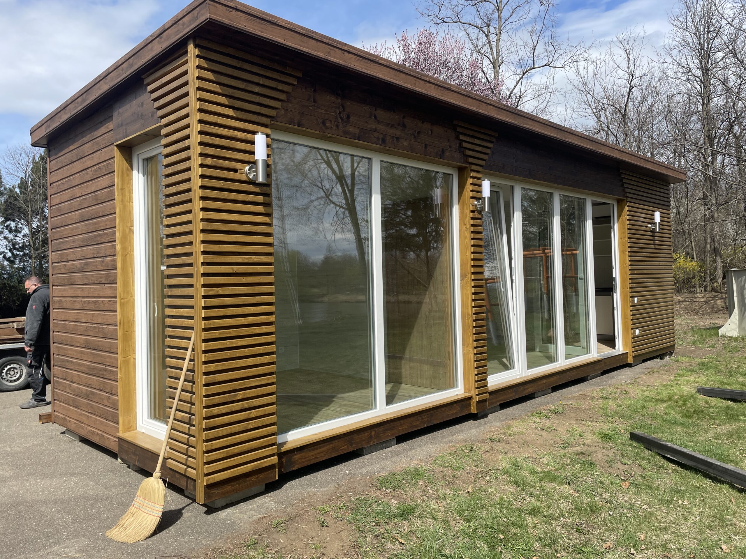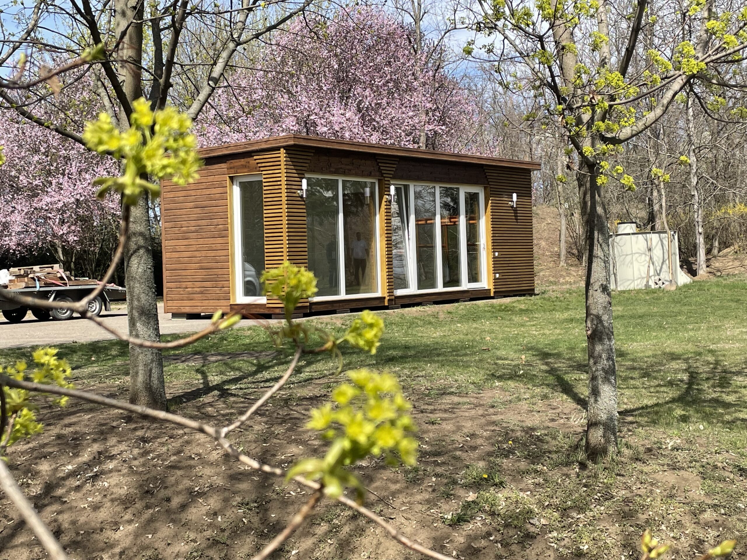 - Zöld övezetben, közvetlen a természetben elhelyezett moduláris házunk a megrendelői igények szerint került kialakításra, ahol az elvárás az volt, hogy a homlokzat burkolatával megfelelő harmóniát alakítsunk ki a környezettel úgy, hogy az épületbe minél több természetes fény juthasson be.