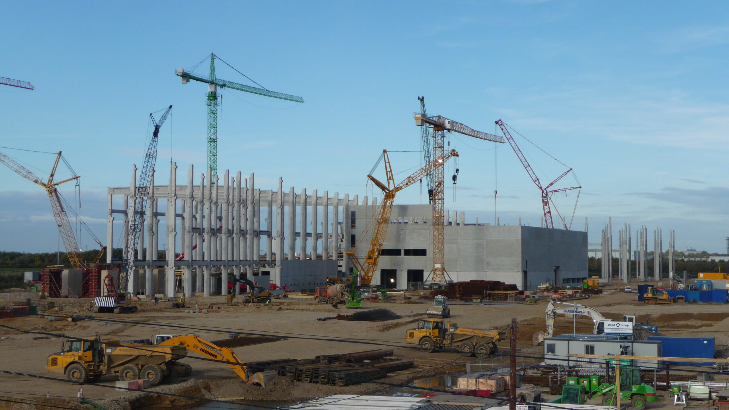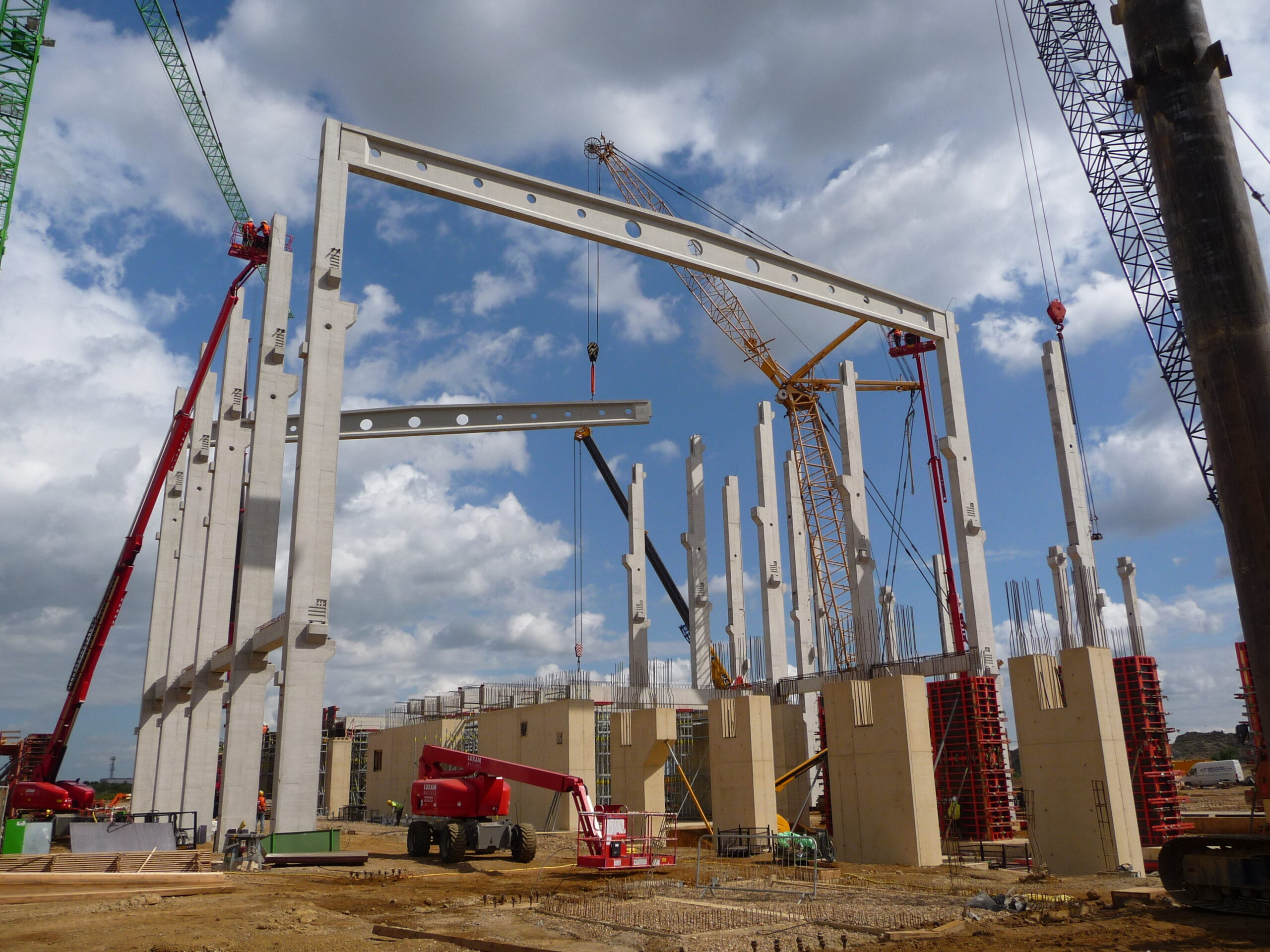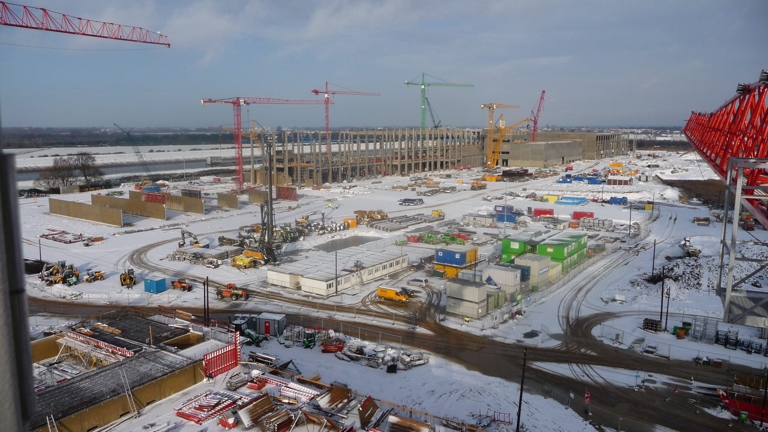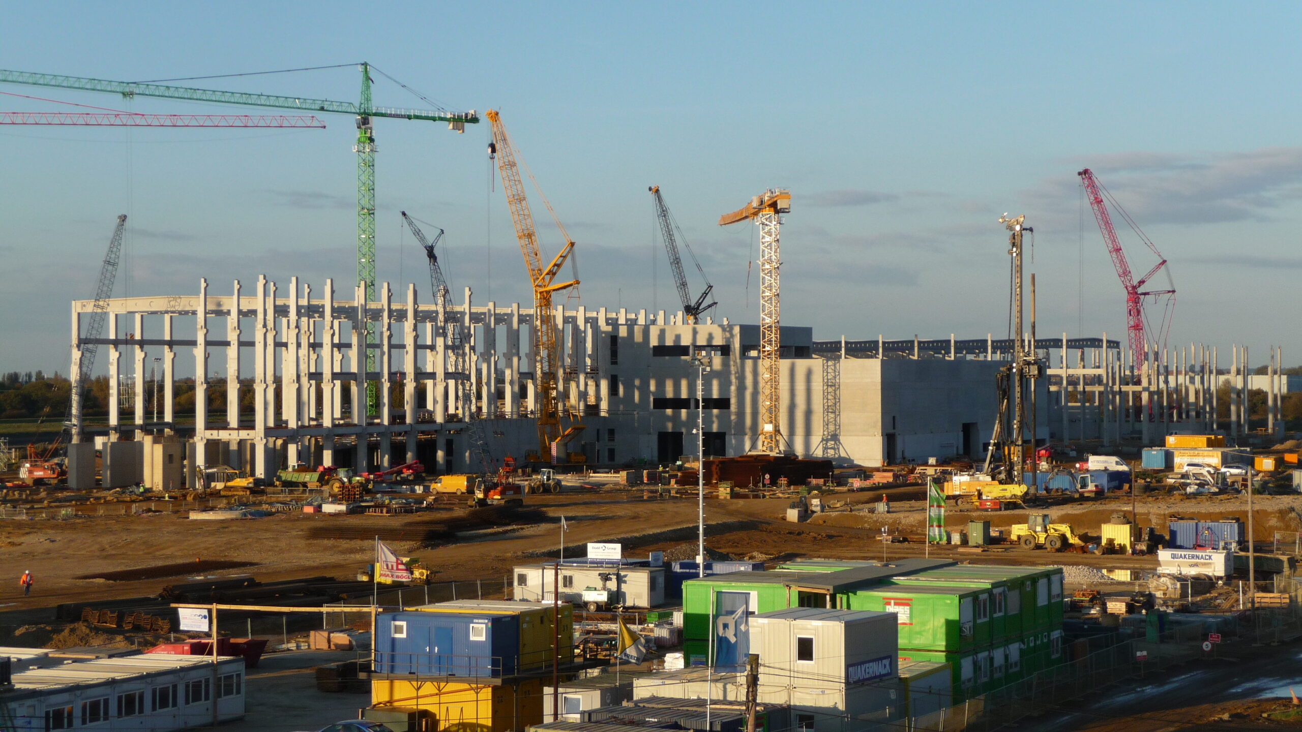 - A GLASS Gmbh megbízásából építettük a 40.000m2-es csarnok komplett vázszerkezetét az alapozástól a teljes szerkezet felállításáig. Az időjárási viszonyok nagy kihívást jelentettek, azonban gyakorlott gépkezelőinknek és szakembereinknek köszönhetően a megbízást határidőre teljesítettük a zord körülmények ellenére is.
